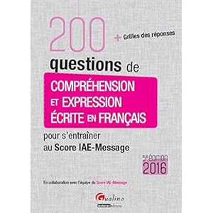 Titre : 200 questions de compréhension et expression écrite en français pour s'entraîner au Score IAE-Message 2016